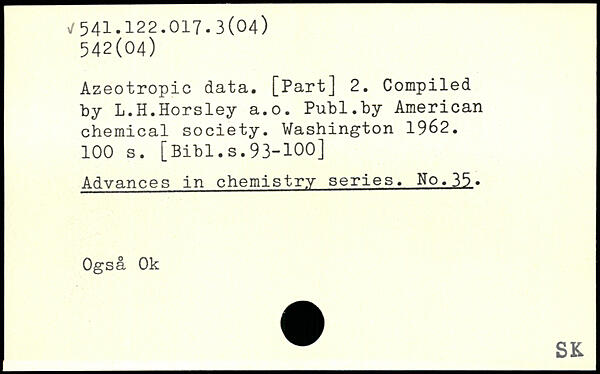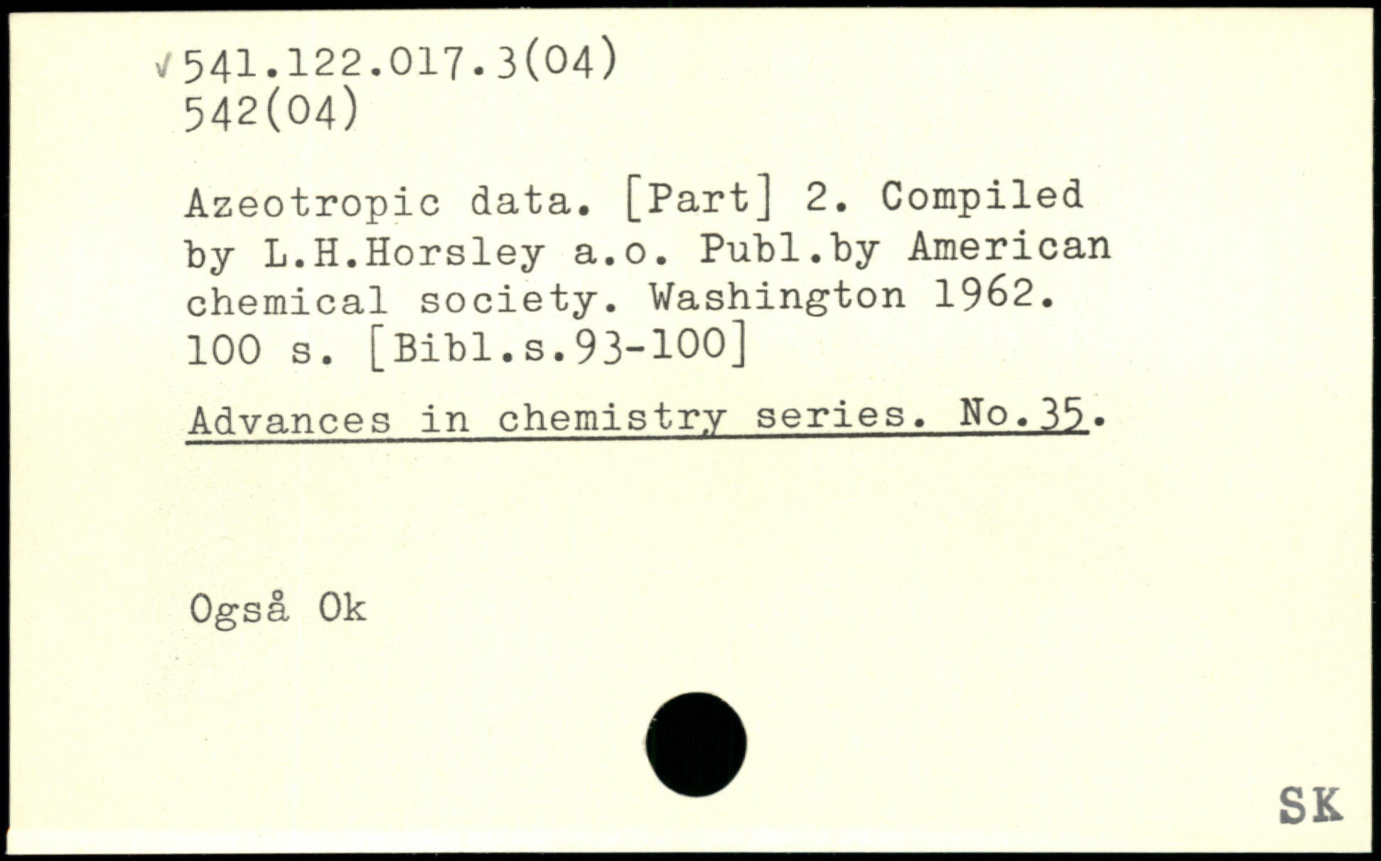 Azeotropic data. [Part] 2. Compiled by L.H.Horsley a.o.