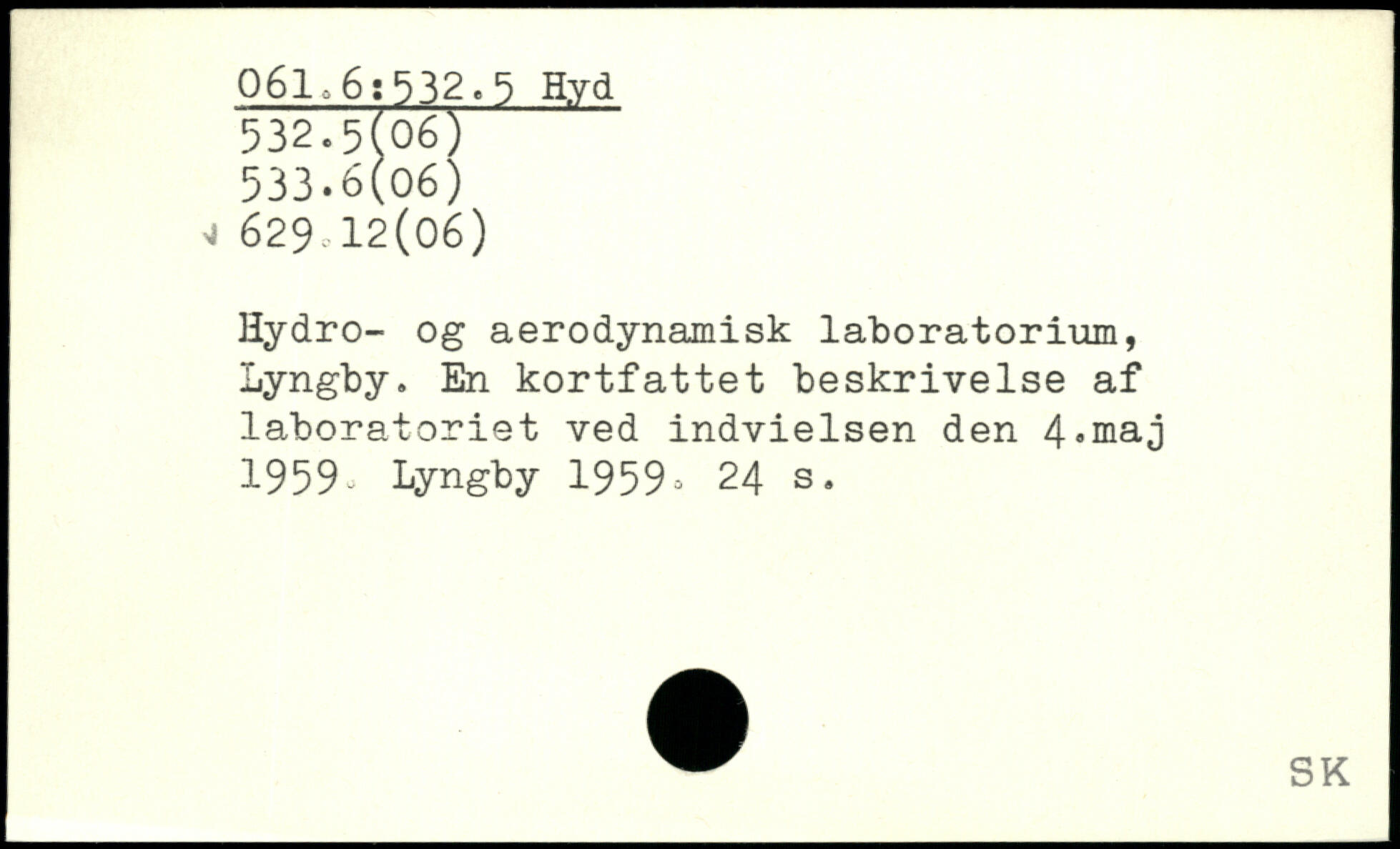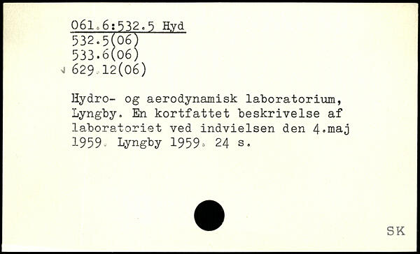 Hydro- og aerodynamisk laboratorium, Lyngby. En kortfattet beskrivelse af laboratoriet ved indvielsen den 4,maj 1959^ Lyngby 1959>