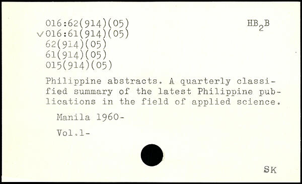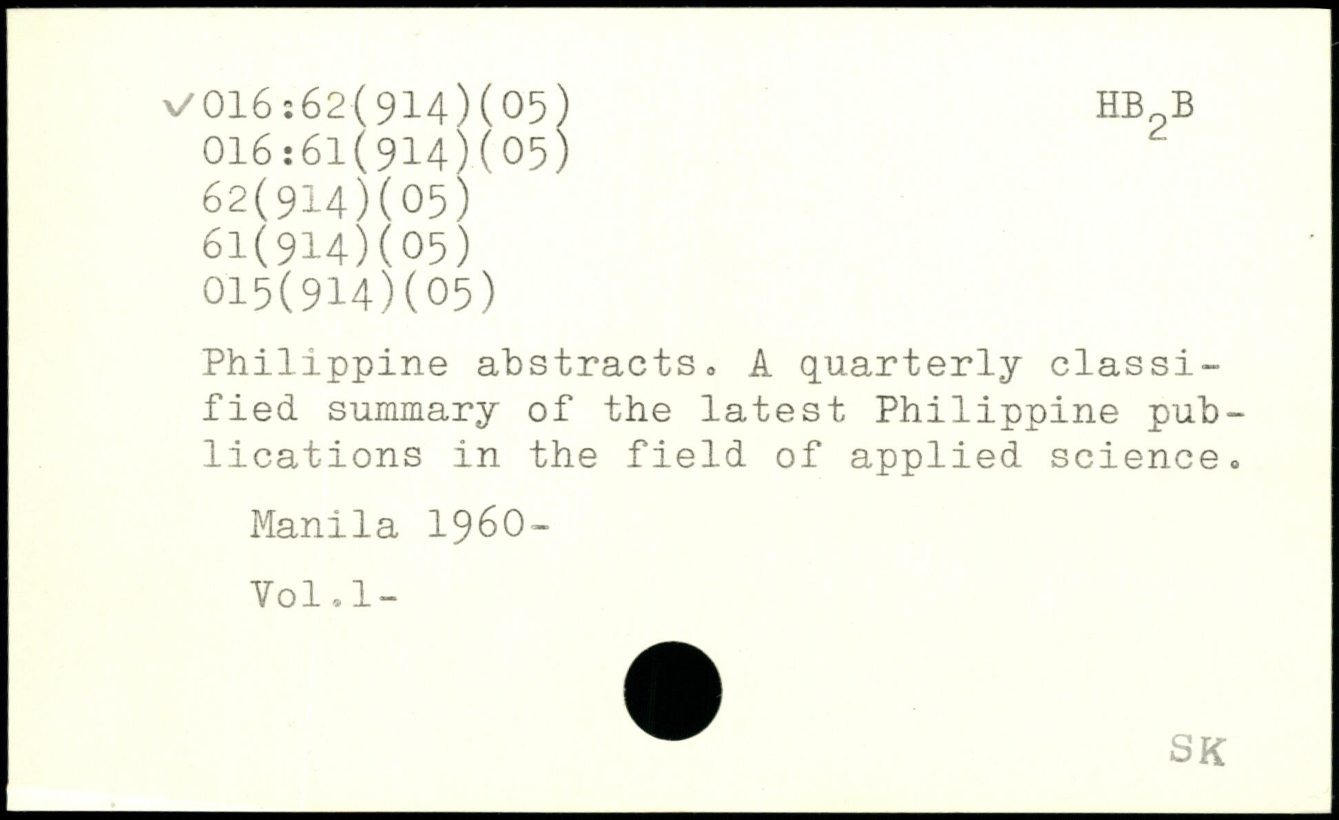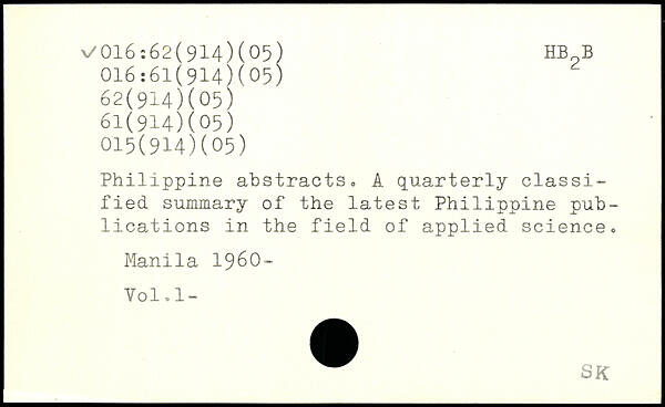 Philippine abstracts,, A quarterly classified summary of the latest Philippine publications in the field of applied science, Manila 1960- Vol.l-