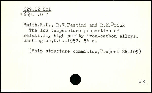 Smith,R.L., R.V.Fastini and R.M.^rick The low temperature properties of relativity high purity iron,carbon alloys.