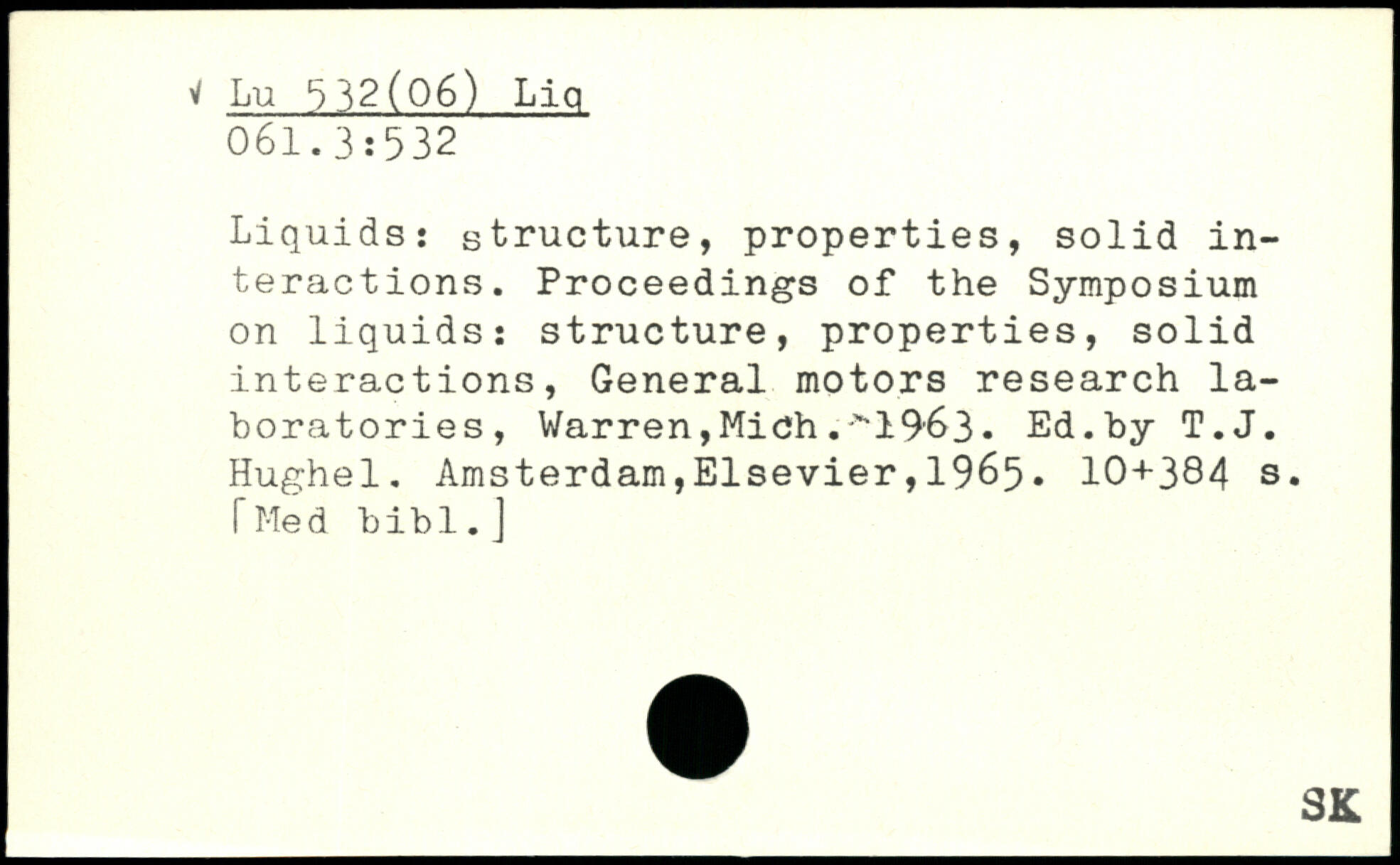 Liquids: structure, properties, solid interactions. Proceedings of the Symposium on liquids: structure, properties, solid interactions, General motors research laboratories, Warren,Mich ,->'l9’63. Ed.by T.J. Hughel.