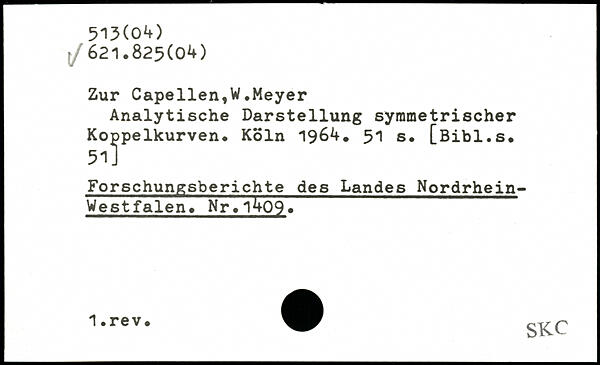 Analytische Darstellung symmetrischer Koppelkurven. Köln 196.4.