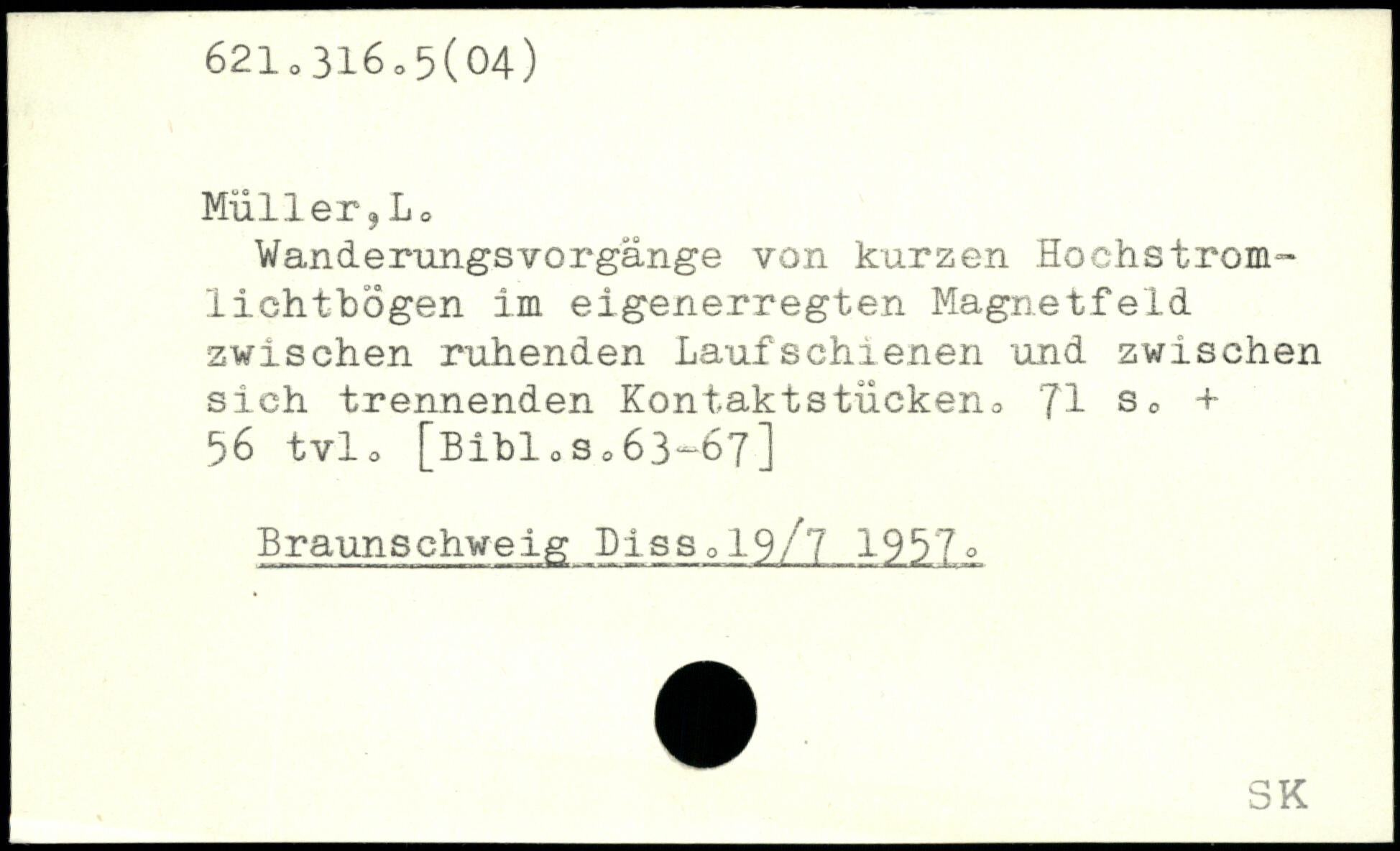 Wanderungsvorgänge von kurzen Hochstrom™ lichtbögen im eigenerregten Magnetfeld zwischen ruhenden Laufschienen und zwischen sich trennenden Kontaktstückeno