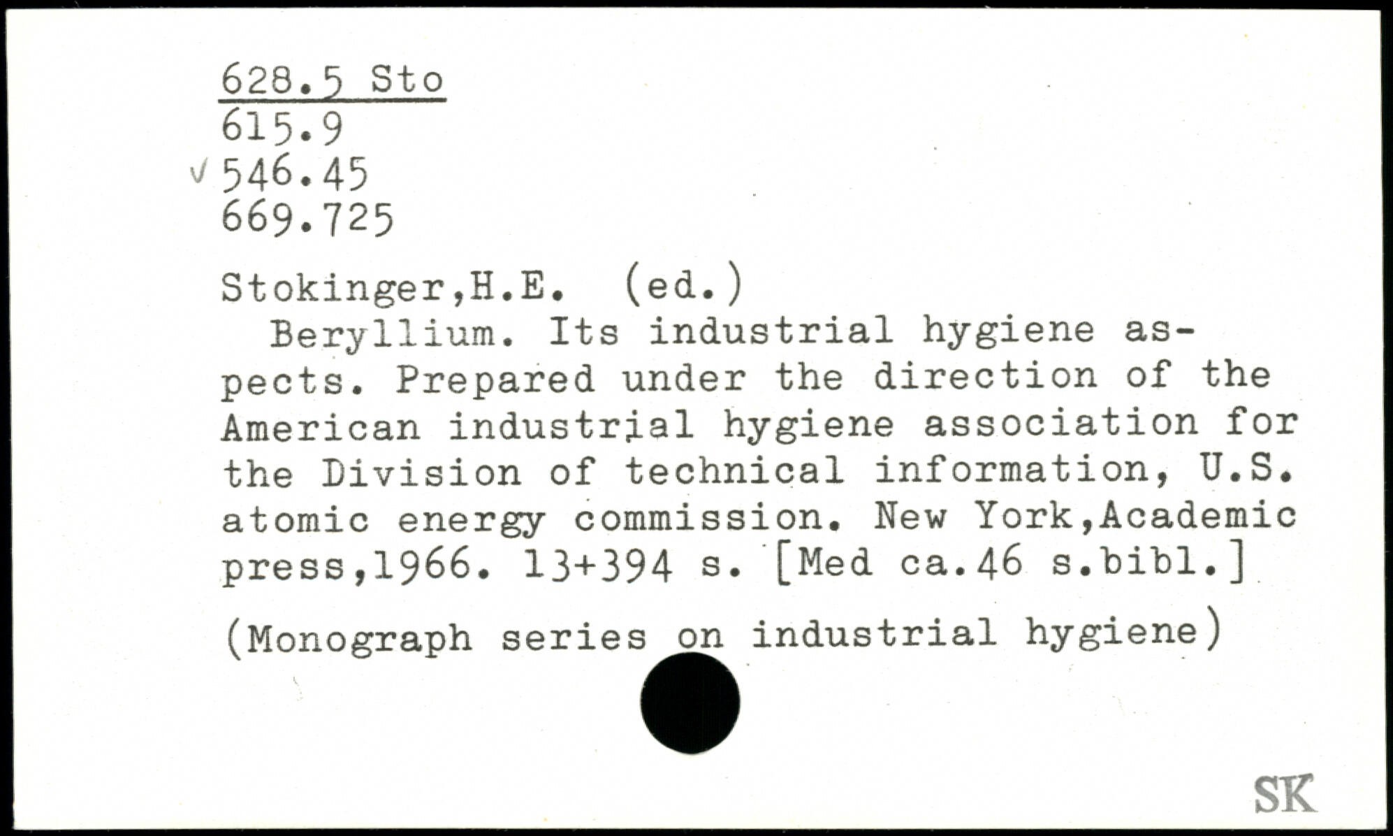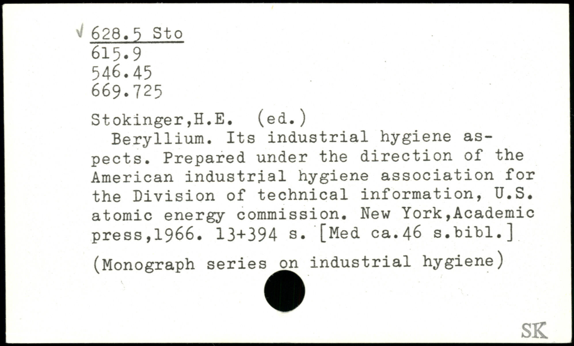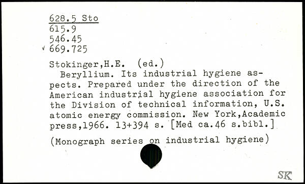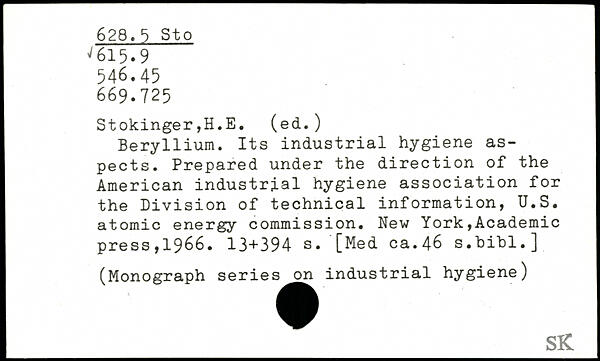 Beryllium. Its industrial hygiene aspects. Prepared under the direction of the American industrial hygiene association for the Division of technical information, U.S. atomic energy commission.