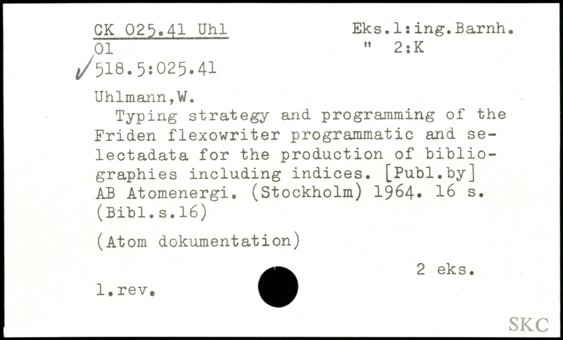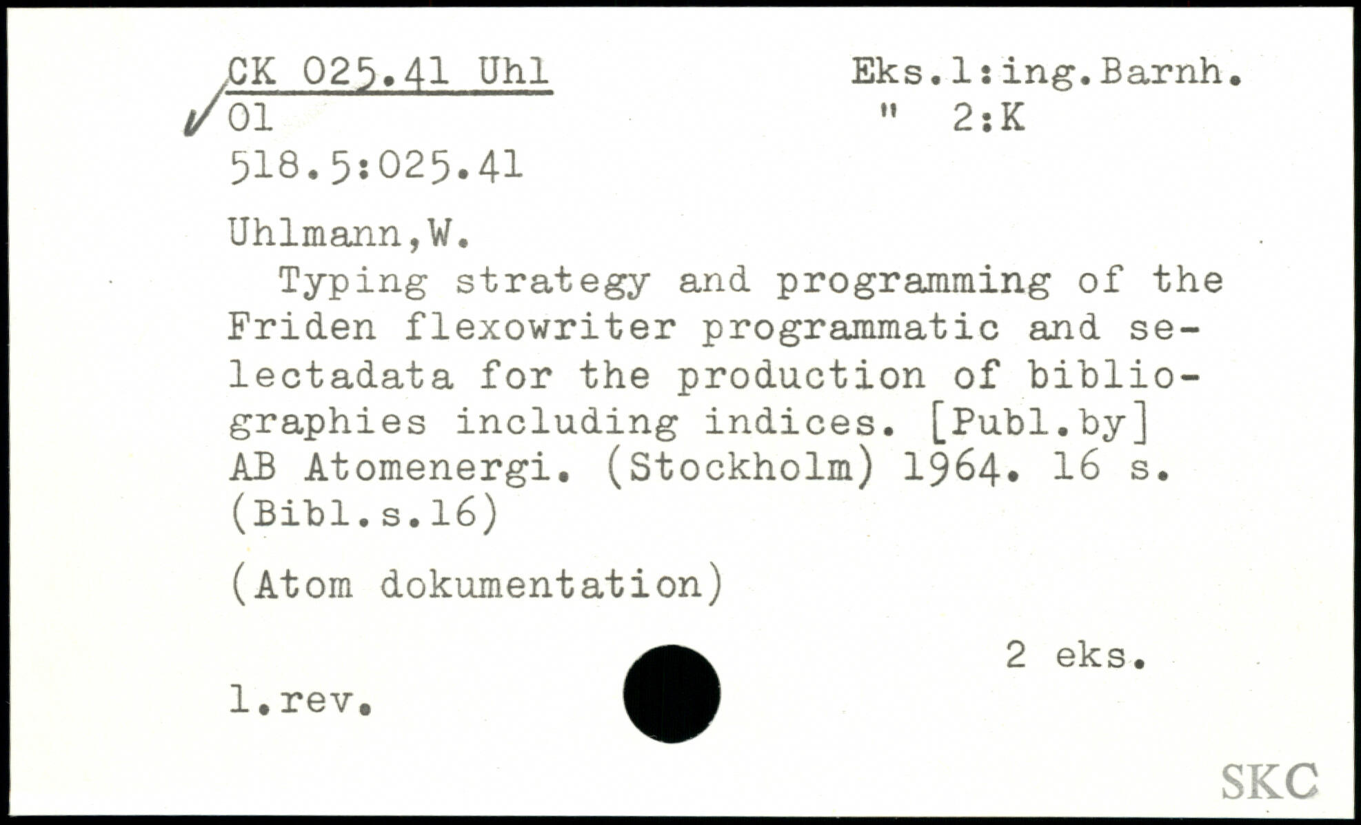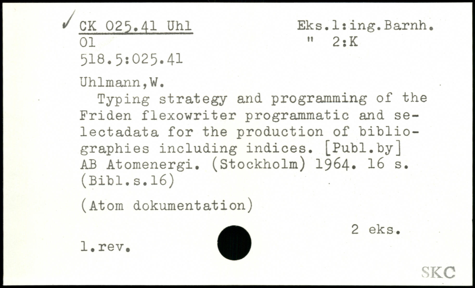 Typing strategy and programming of the Friden flexowriter programmatic and se-lectadata for the production of bibliographies including indices.