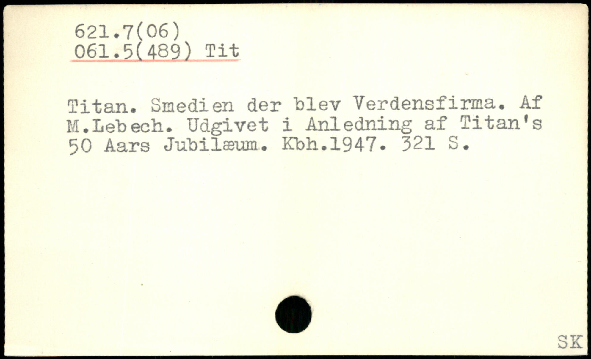 Titan. Smedien der blev Verdensfirma. Af M.Lebech. Udgivet i Anledning af Titan's 50 Aars Jubilæ-um. Kbh.1947.