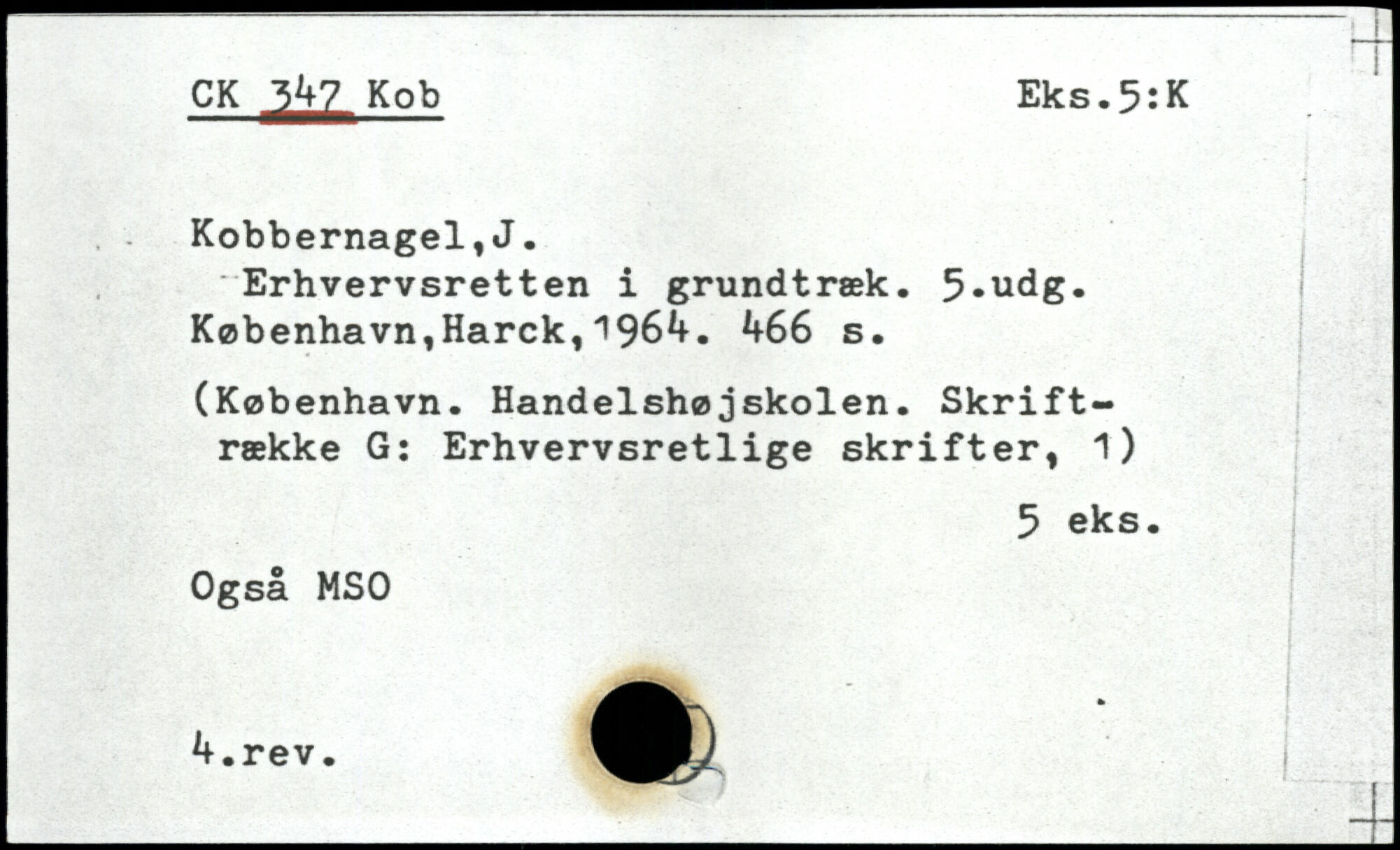Erhvervsretten i grundtræk. 5,udg. København,Harck,196^, .f