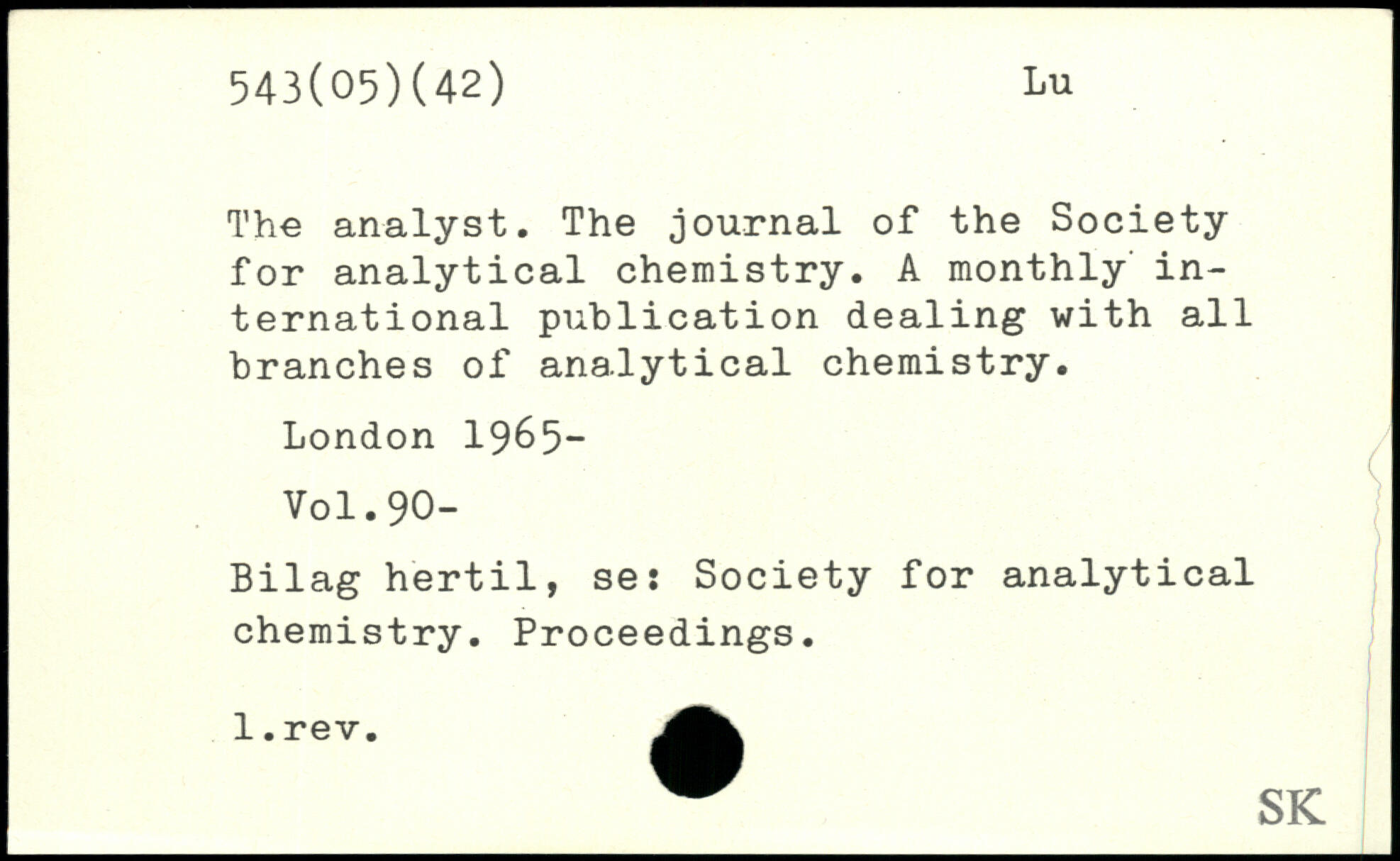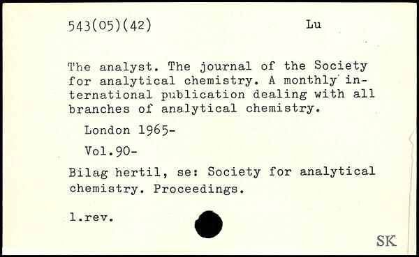 The analyst. The journal of the Society for analytical chemistry. A monthly international publication dealing with all branches of analytical chemistry.