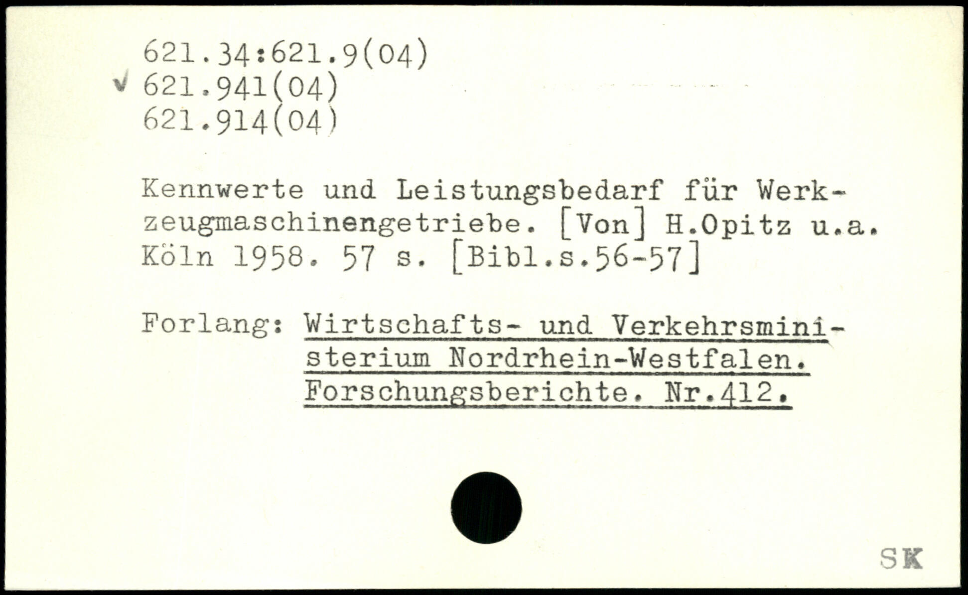 Kennwerte und Leistungsbedarf fiir Werk-zeugmaschinengetriebe. [Von] H.Opitz u.a.