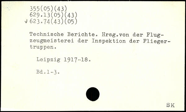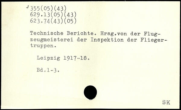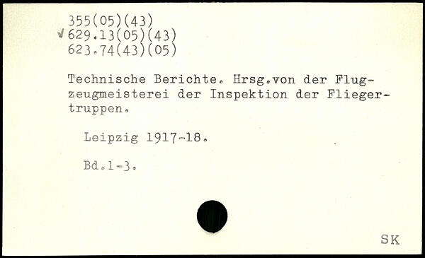 Technische Berichte. Hrsg.von der Flugzeugmeisterei der Inspektion der Fliegertruppen