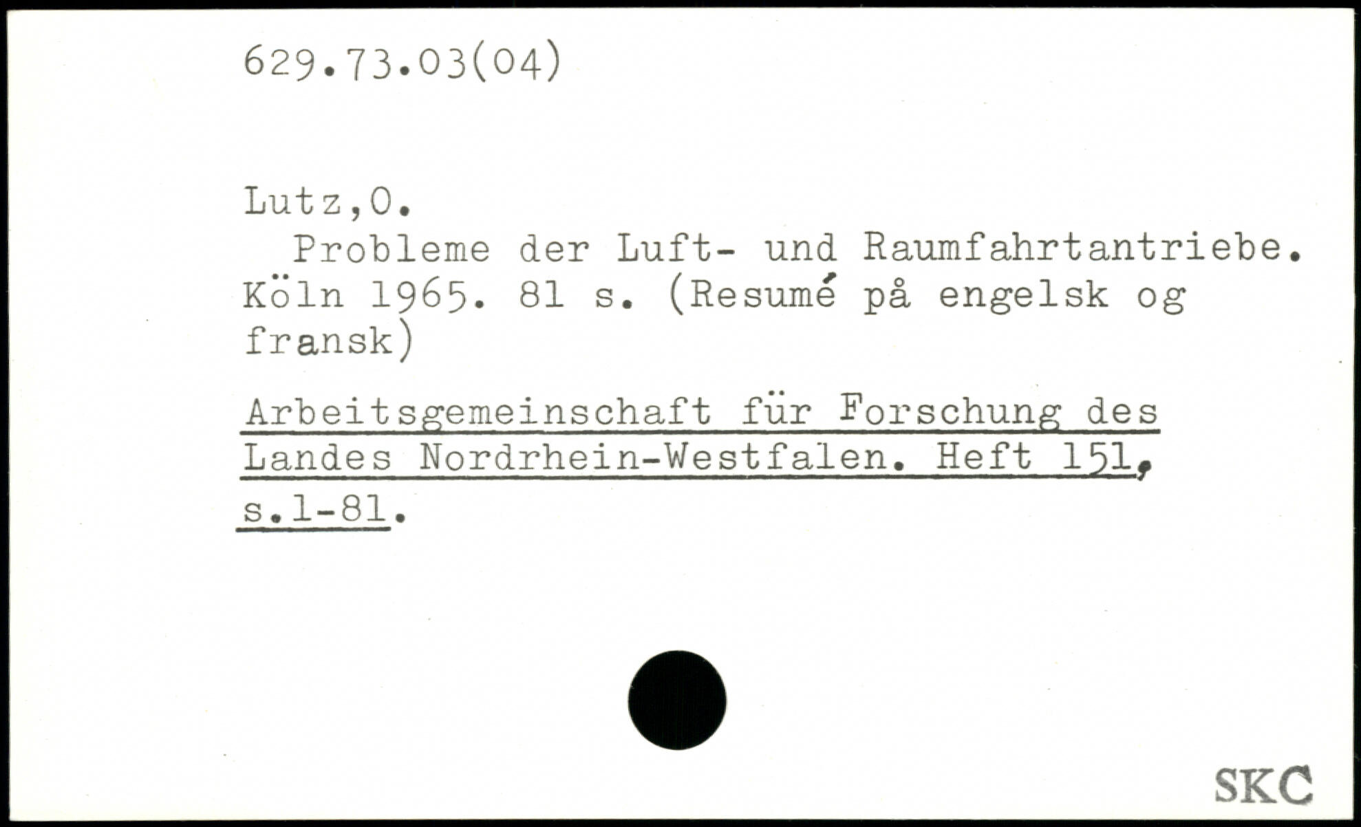 Probleme der Luft- und Raumfahrtantriebe. Köln 19é5.