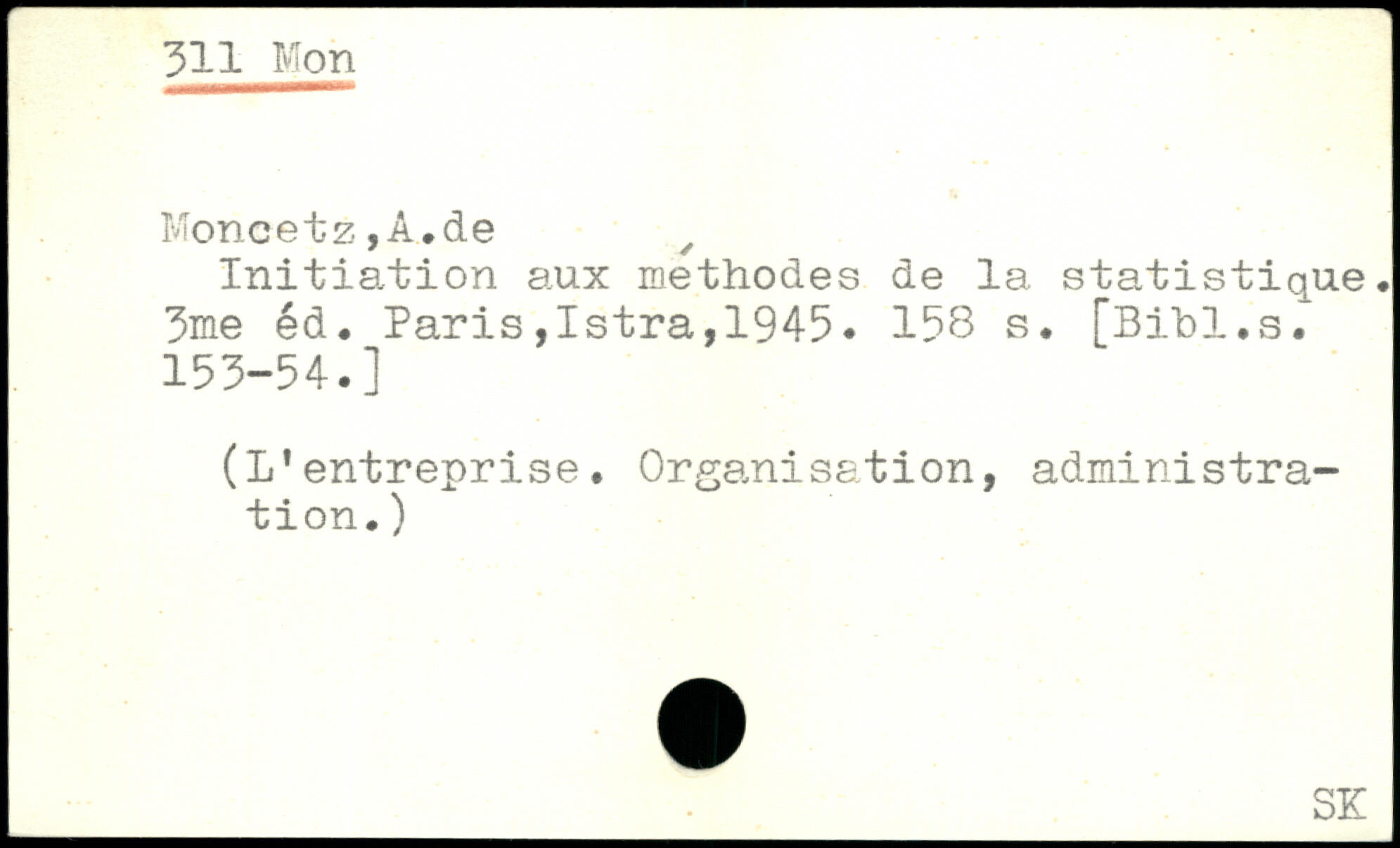 Moncetz ,A..de , Initiation aux méthodes de la statistique. 3me éd.