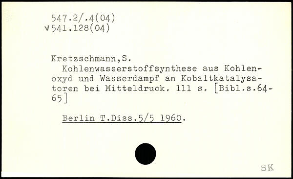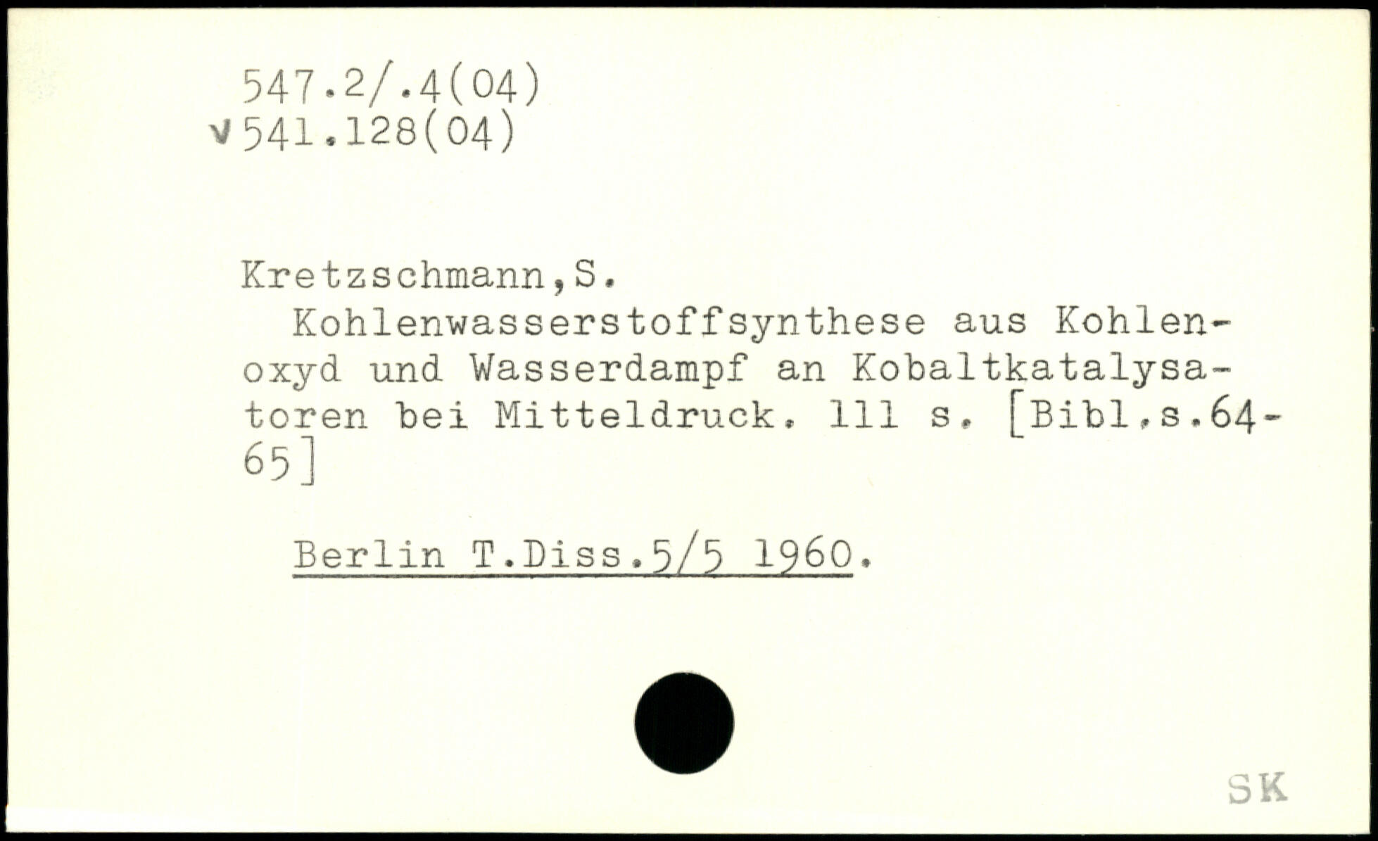 KohlenwasserstoffSynthese aus Kohlenoxyd und Wasserdampf an Kobaltkatalysatoren bei Mitteldruck.