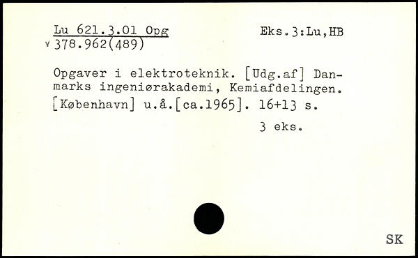 Opgaver i elektroteknik. [Udg.af] Danmarks ingeniørakademi, Kemiafdelingen.