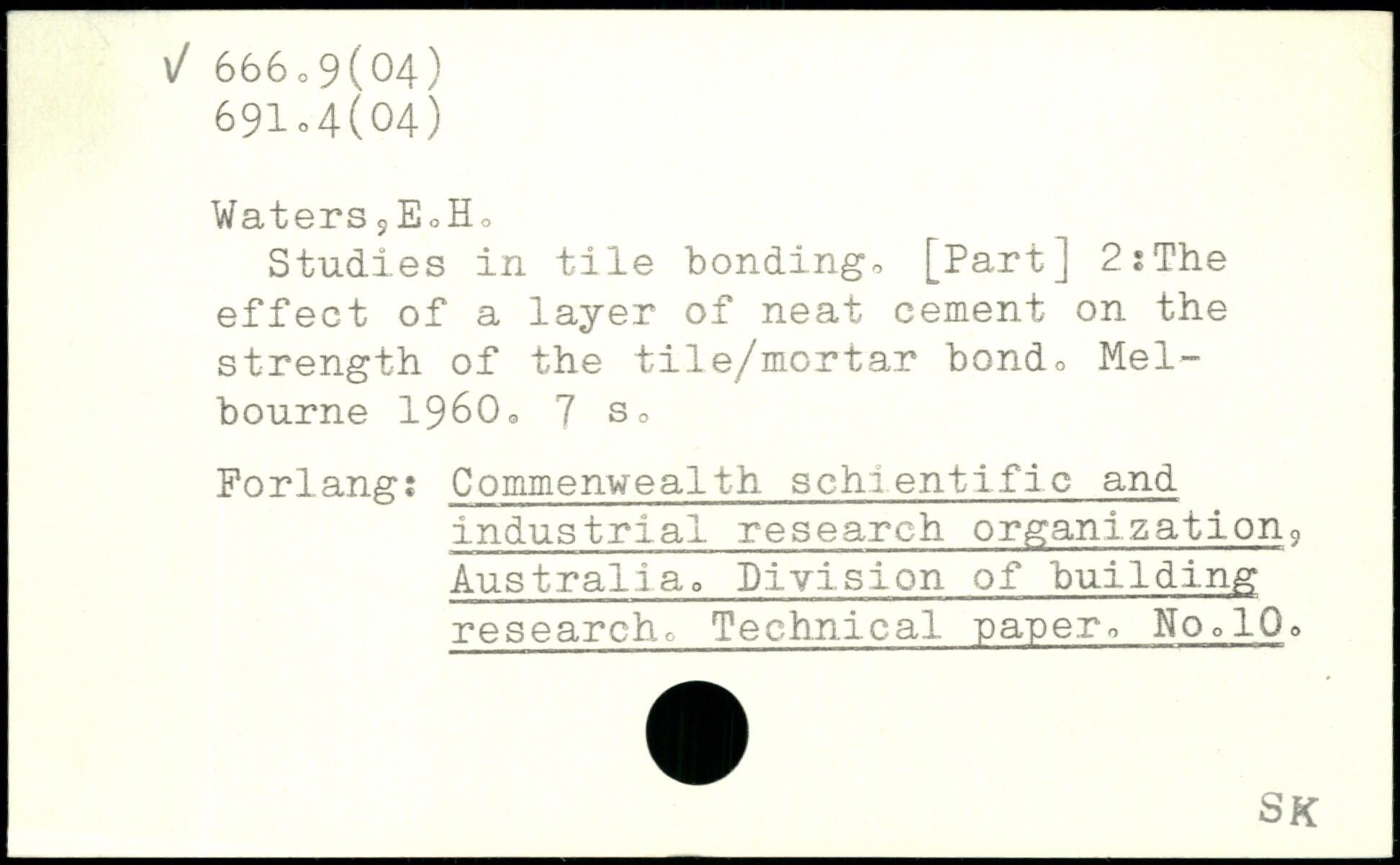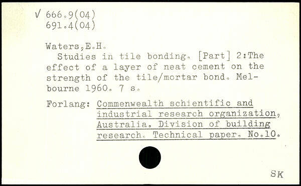 Waters jEoHo Studies in tile bonding-, [Part] 2?The effect of a layer of neat cement on the strength of the tile/mortar bond, Melbourne 19600