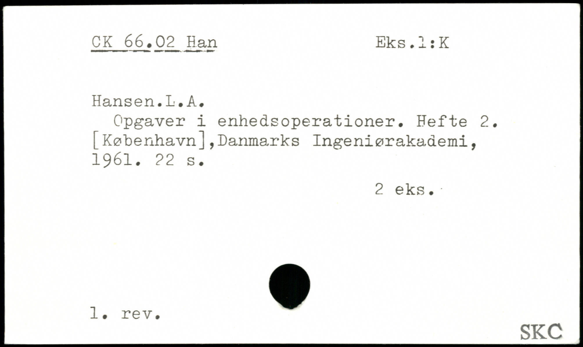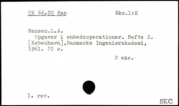Opgaver i enhedsoperationer. Hefte 2. [København],Danmarks Ingeniørakademi, 1961.