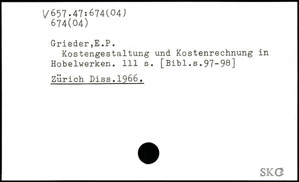 Kostengestaltung und Kostenrechnung in Hobelwerken. Ill s.