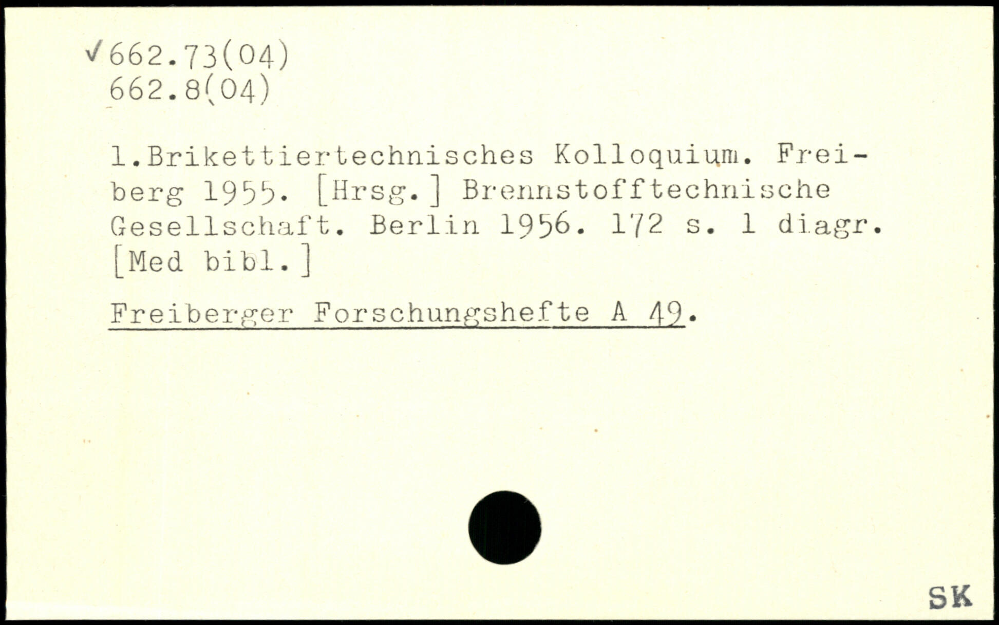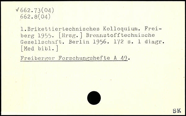 1.Brikettiertechnisches Kolloquium. Freiberg 1966. [Hrsg.] Brennstofftechnische Gesellschaft.