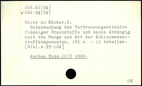 Meier zu Kocker,H. Untersuchung des Verhrennungsablaufes flüssiger Brennstoffe und seine Abhängigkeit von Menge und Art der Kohlenwasserstof fkomponenten.