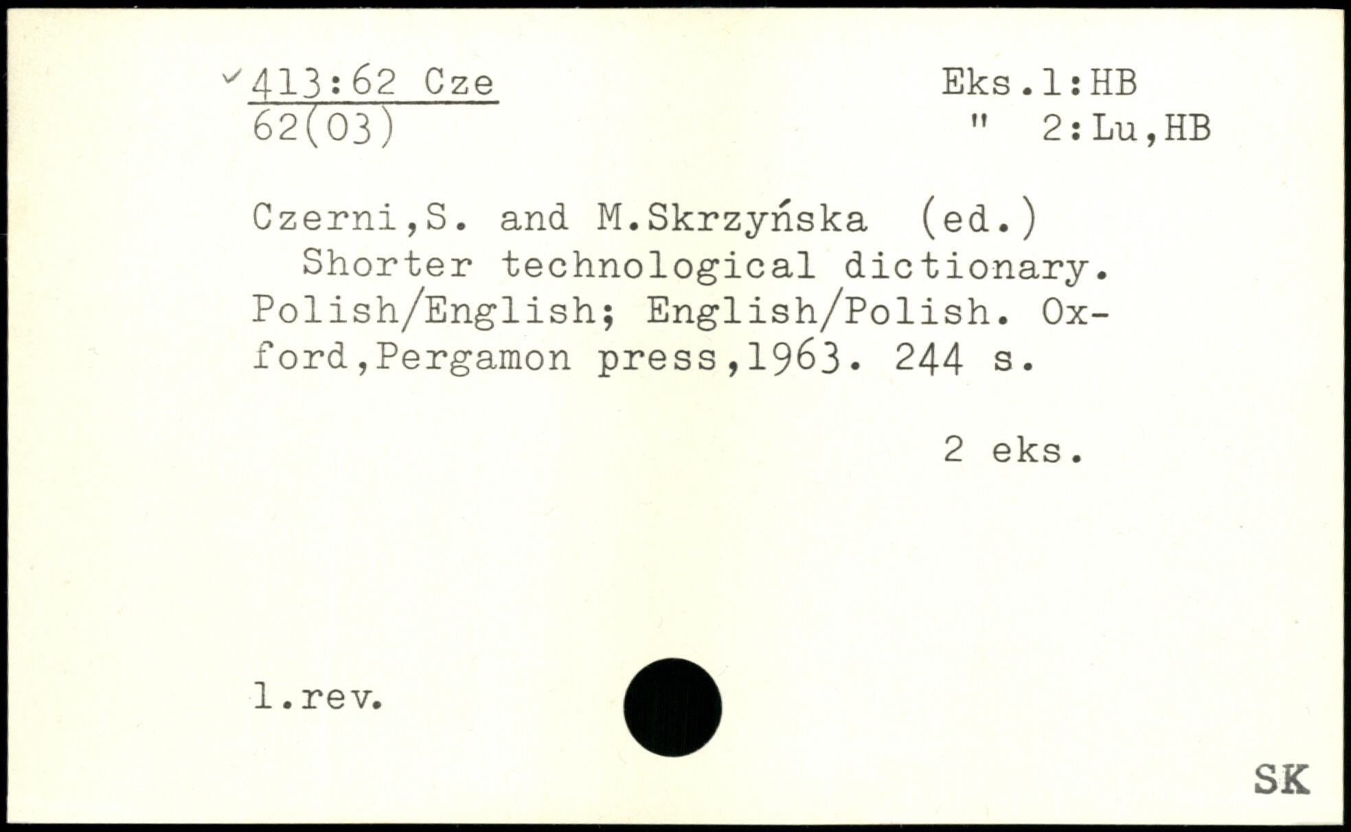 Shorter technological dictionary. Polish/English; English/Polish.