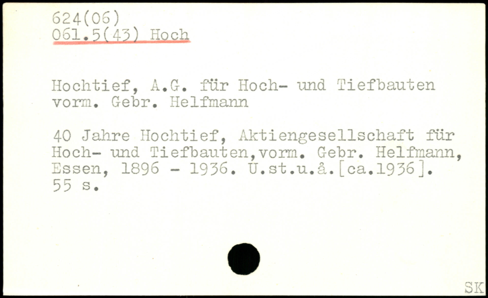 Hochtief, A.G. für Hoch- und liefhauten vorn. Gehr. Helfmann 40 Jahre Hochtief, Aktiengesellschaft für Hoch- und Tiefhauten,vorn. Gehr.