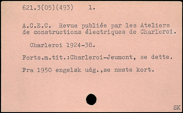 A.C.E.C. Revue publiée par les Ateliers de constructions électriques de Charleroi. Charleroi 1924-38. Ports.m.tit.rCharleroi-Jeumont, se dette. Pra 1950 engelsk udg.,se næste kort.