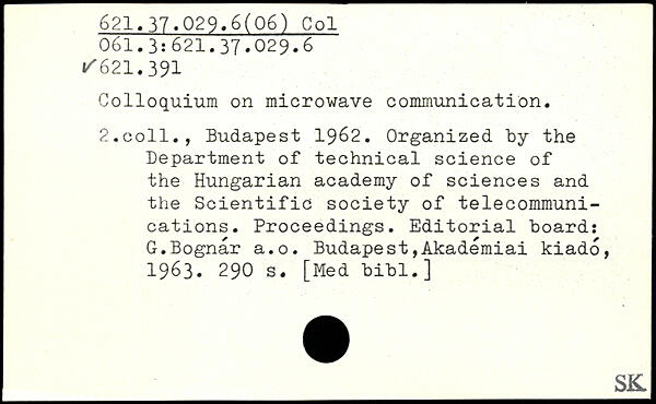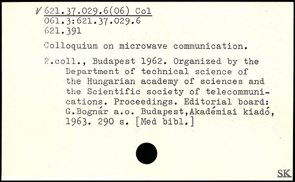 UDK: 621.37.029.6(06) Col, 061.3:621.37.029.6, 621.391