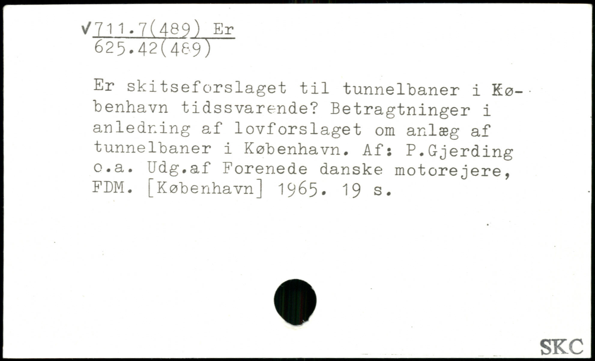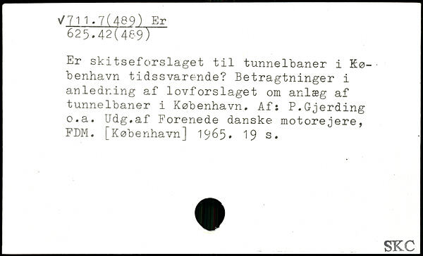 Er skitseforslaget til tunnelbaner i København tidssvarende? Betragtninger i anledning af lovforslaget om anlæg af tunnelbaner i København. Af: P.Gjerding o.a. Udg.af Forenede danske motorejere, FDM.