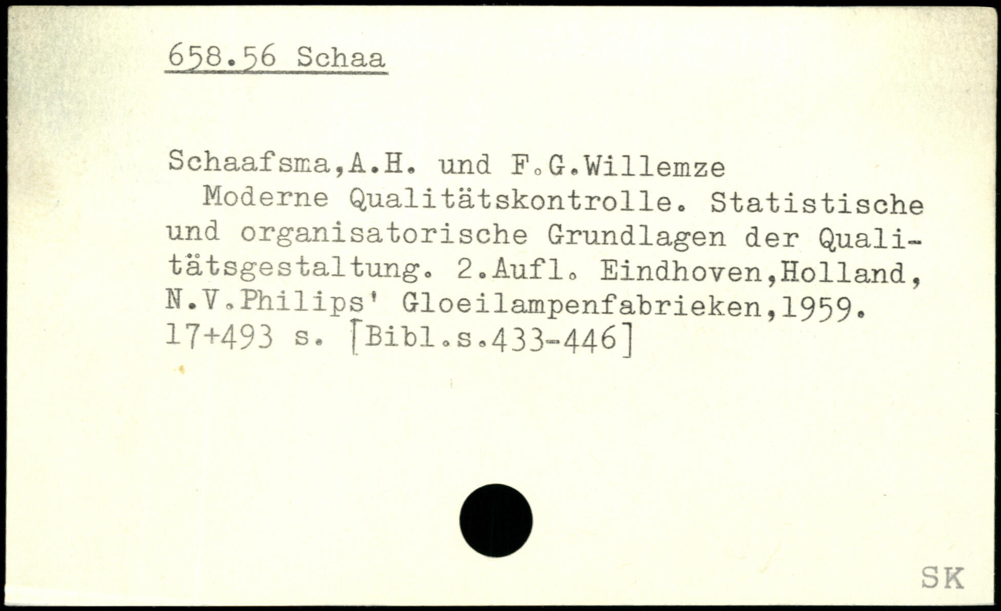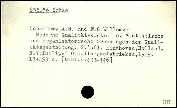 Moderne Qualitätskontrolle. Statistische und organisatorische Grundlagen der Qualitätsgestaltung. 2.Auf16 Eindhoven,Holland, N.V,Philips’ Gloeilampenfabrieken,1959.