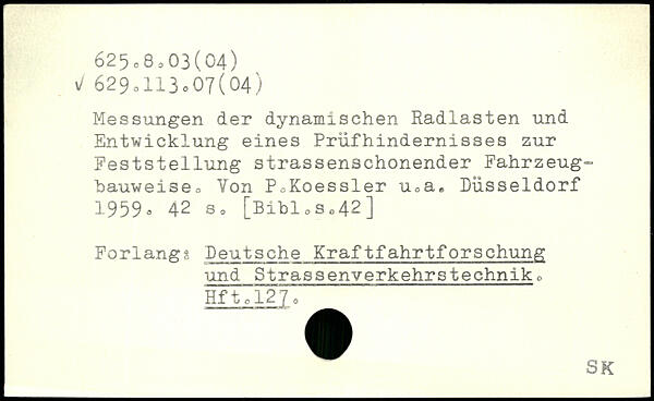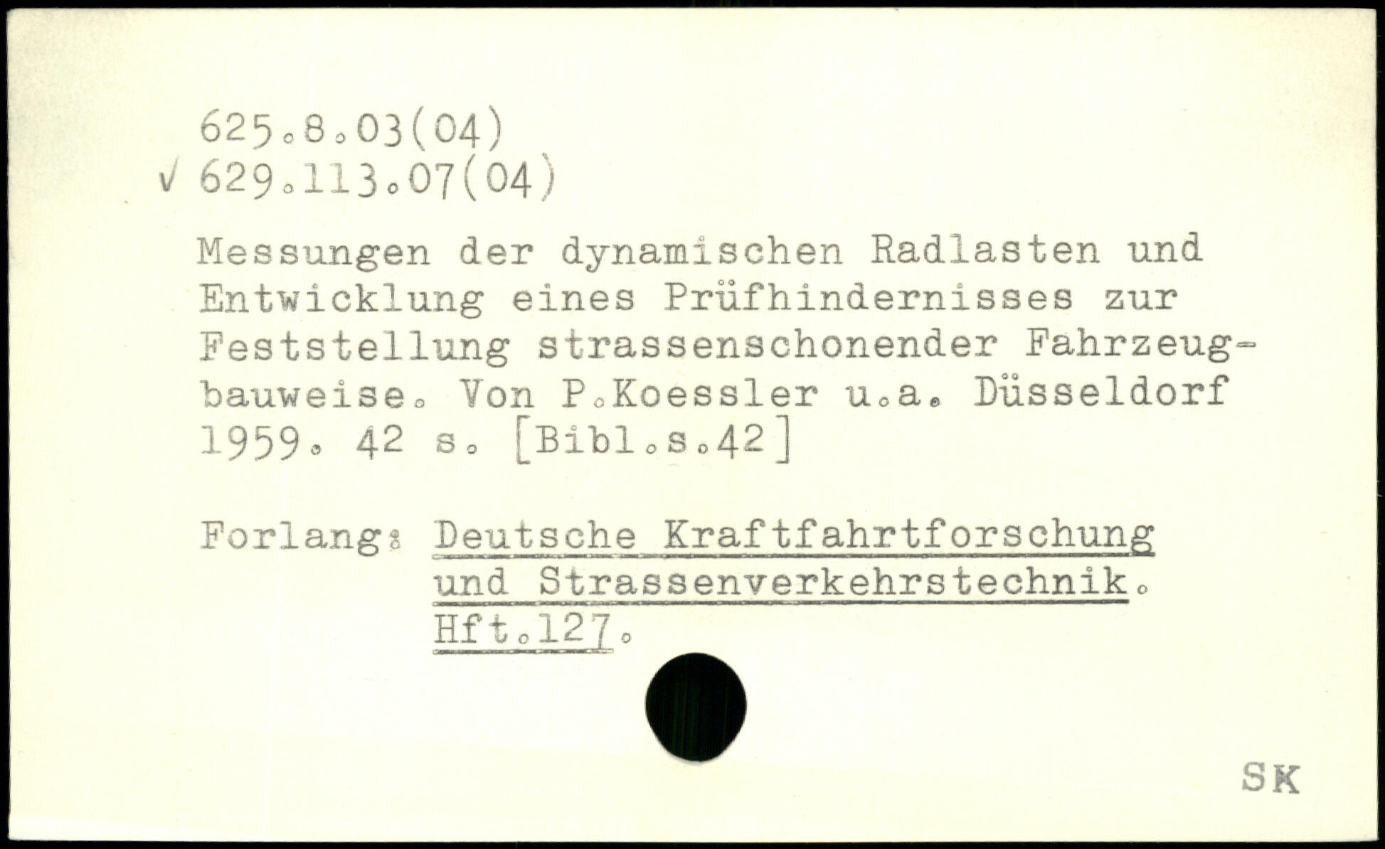 Messungen der dynamischen Radlasten und Entwicklung eines Priifhindernisses zur Feststellung strassenachonender Fahrzeug-Bauweise,, Von PcKoessler u0ae Düsseldorf 1959