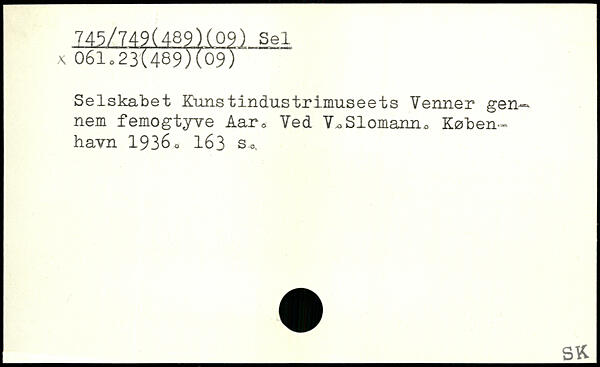 Selskabet Kunstindustrimuseets Venner gennem femogtyve Aar. Ved VoSlomamu