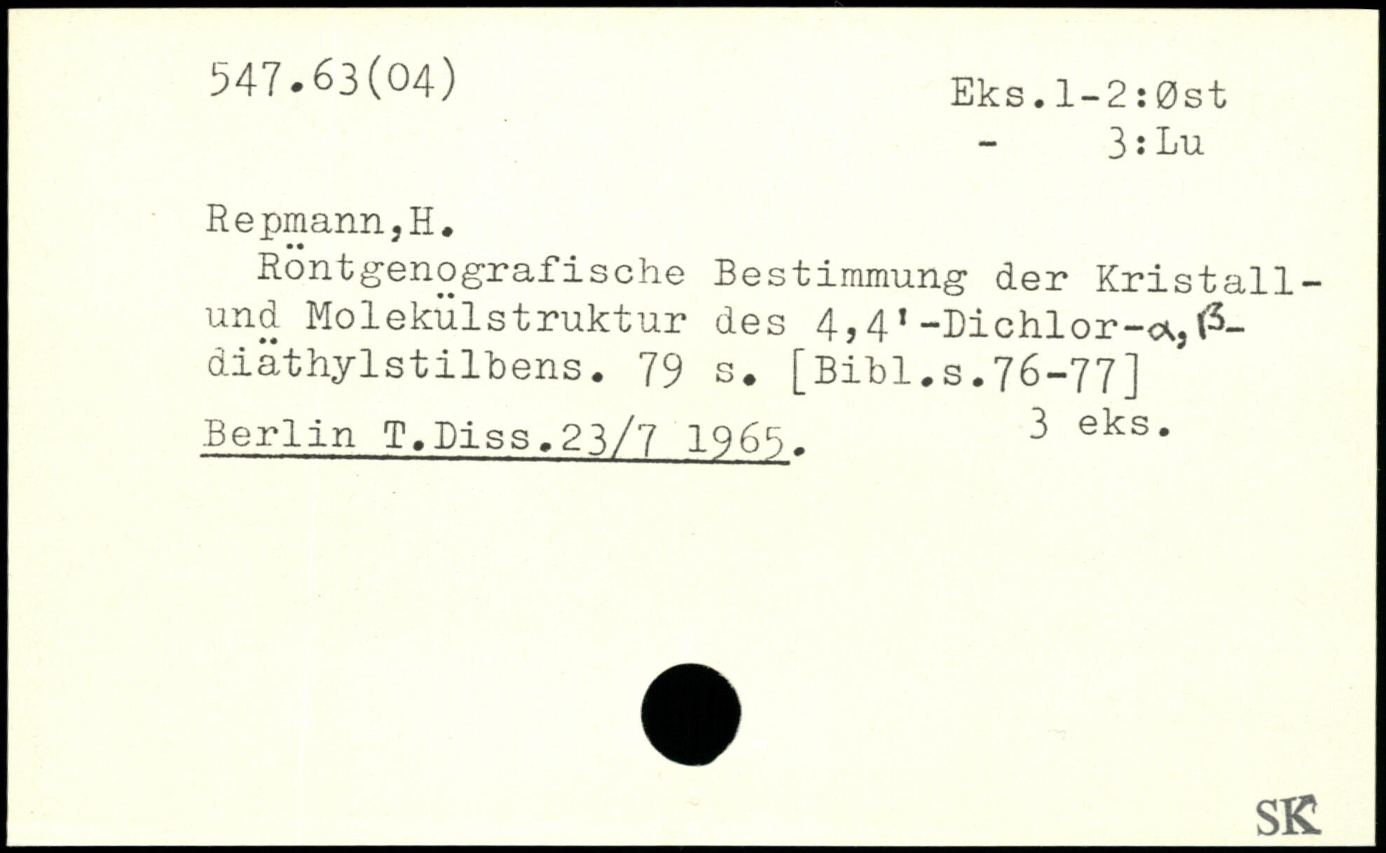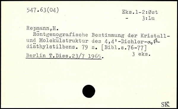 Rontgenogxafische Bestimmung der Kristallund Molekülstruktur des 4,41-Dichlor-a,l'5-diäthylstilbens.