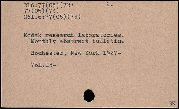 Kodak research laboratories. Monthly abstract bulletin. Rochester