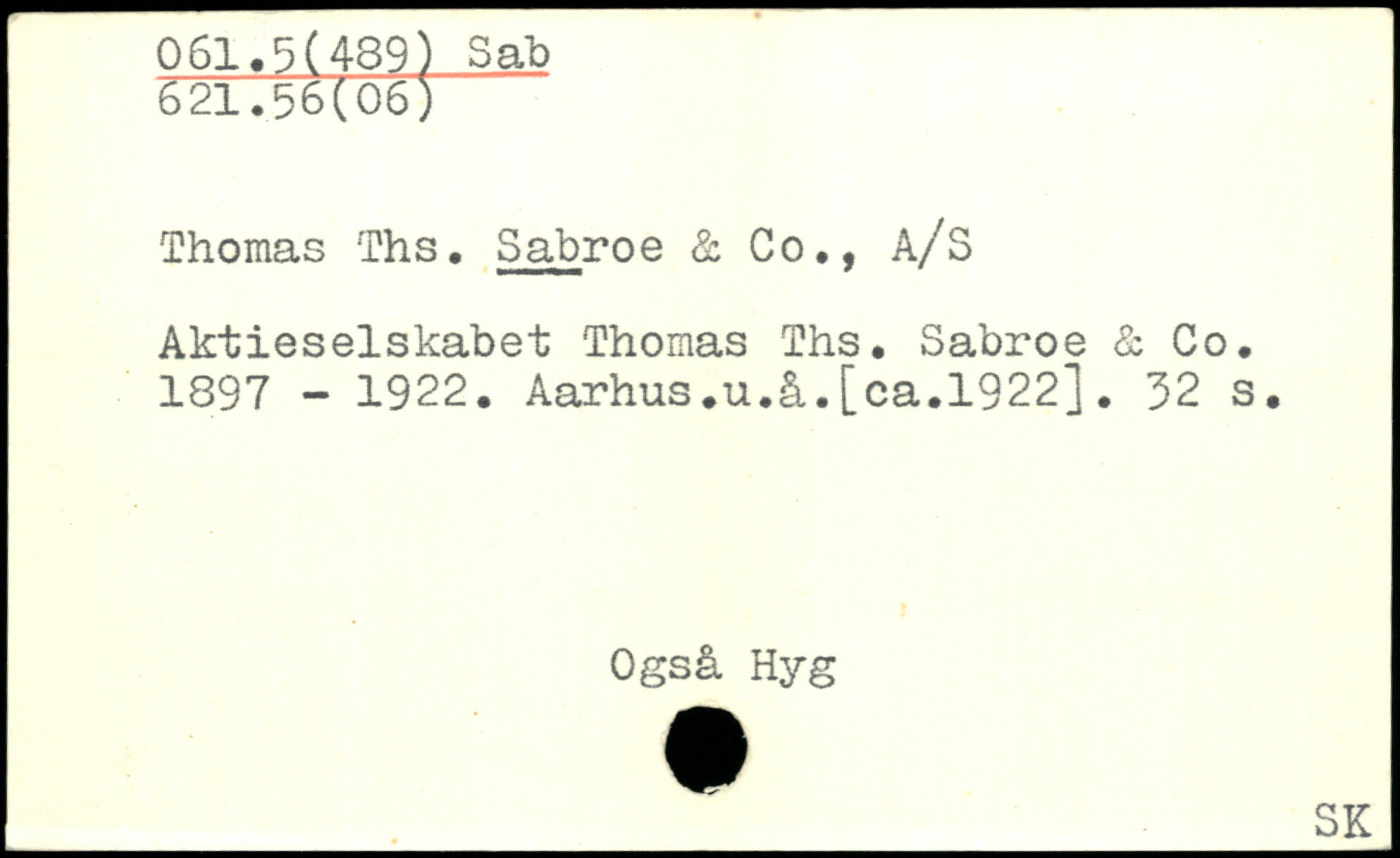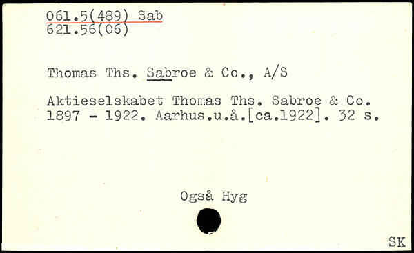 Thomas Ths. Sabroe & Co., A/S Aktieselskabet Thomas Ths. Sabroe & Co. 1897 - 1922. Aarhus.u.å.[ca.1922]