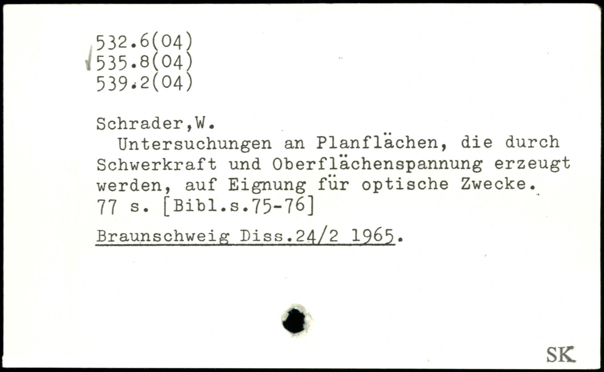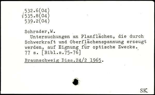Untersuchungen an Planflachen, die durch Schwerkraft und Oberflächenspannung erzeugt werden, auf Eignung für optische Zwecke.