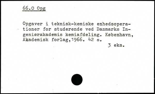 Opgaver i teknisk-kemiske enhedsoperationer for studerende ved Danmarks Ingeniørakademis kemiafdeling.