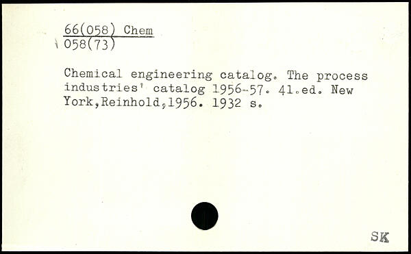 Chemical engineering catalog. The process industries' catalog 1956-57, 41,ed. New York,Reinhold91956.