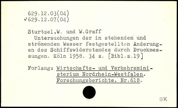 Sturtzel,W.. und V.Graff Untersuchungen der in stehendem und strömendem Wasser festgestellten Änderungen des Schiffswiderstandes durch Druckmes-sungen