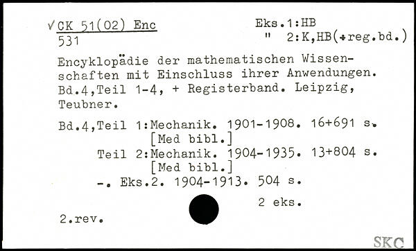 Encyklopädie der mathematischen Wissenschaften mit Einschluss ihrer Anwendungen.
