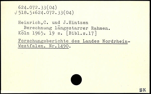 Berechnung längsstarrer Rahmen. Köln 19Ö5