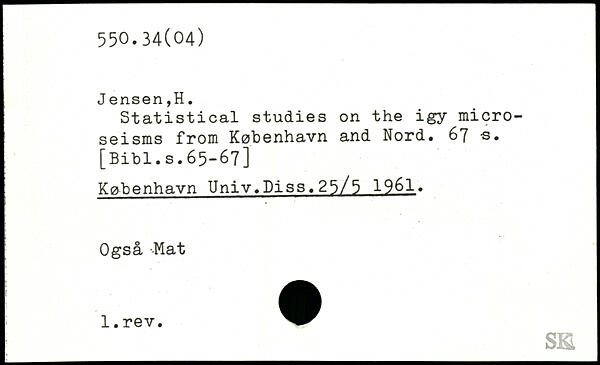 Statistical studies on the igy micro-seisms from København and Nord. 67