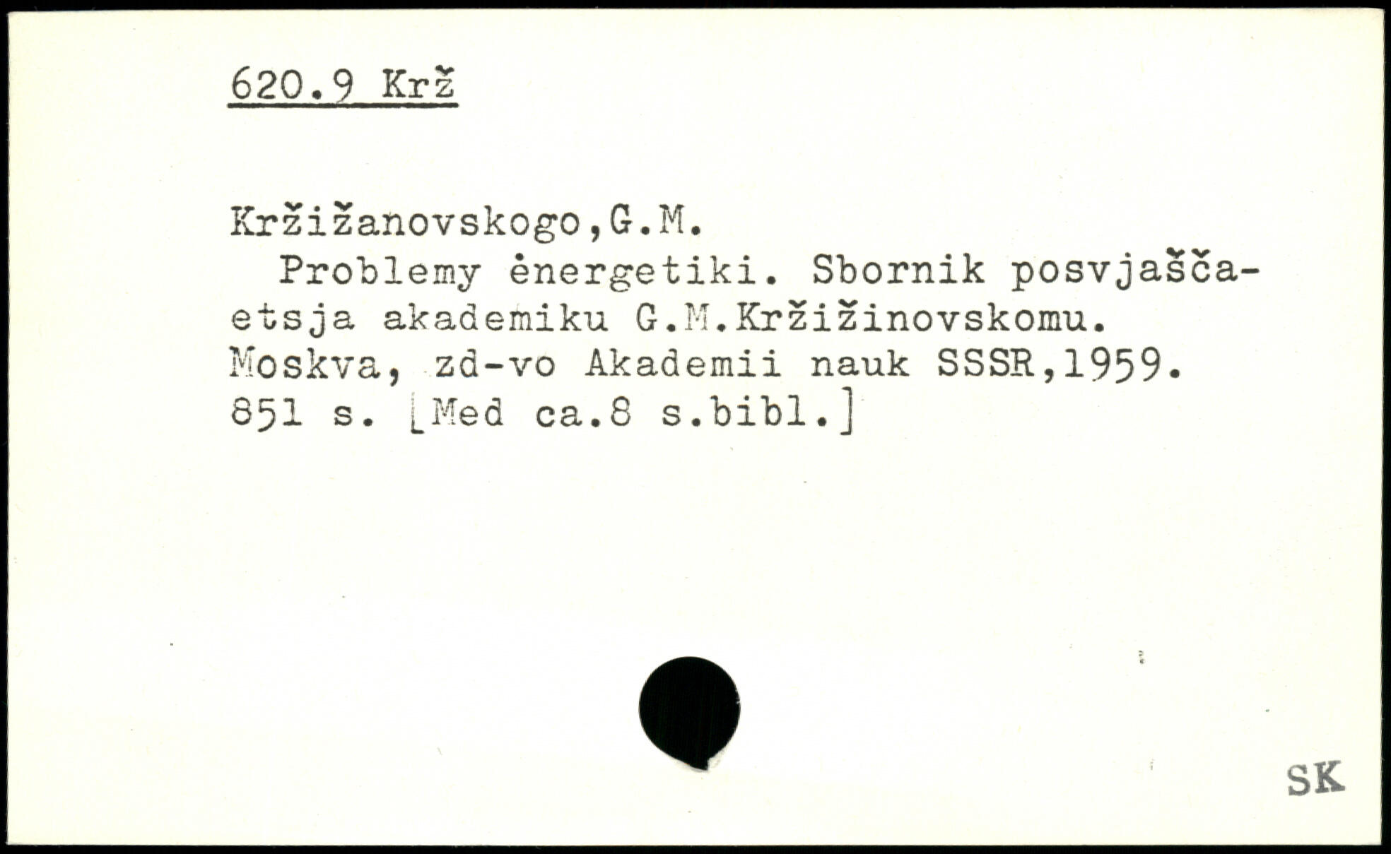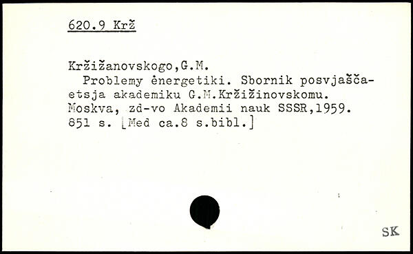 Problemy énergetiki. Sbornik posvjasca-etsja akademiku G.M.Krzizinovskomu. Moskva, zd-vo Akademii nauk SSSR,1959. ö
