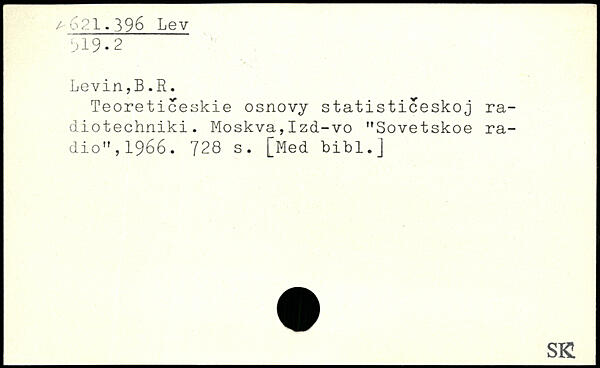 Teoreticeskie osnovy statisticeskoj ra-diotechniki. Moskva,Izd-vo ”Sovetskoe radio”, 1966.