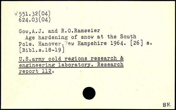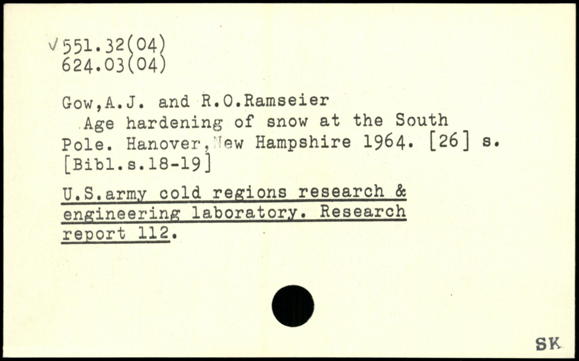 Age hardening of snow at the South Pole. Hanover, ’Tew Hampshire 19^4. [26] s.