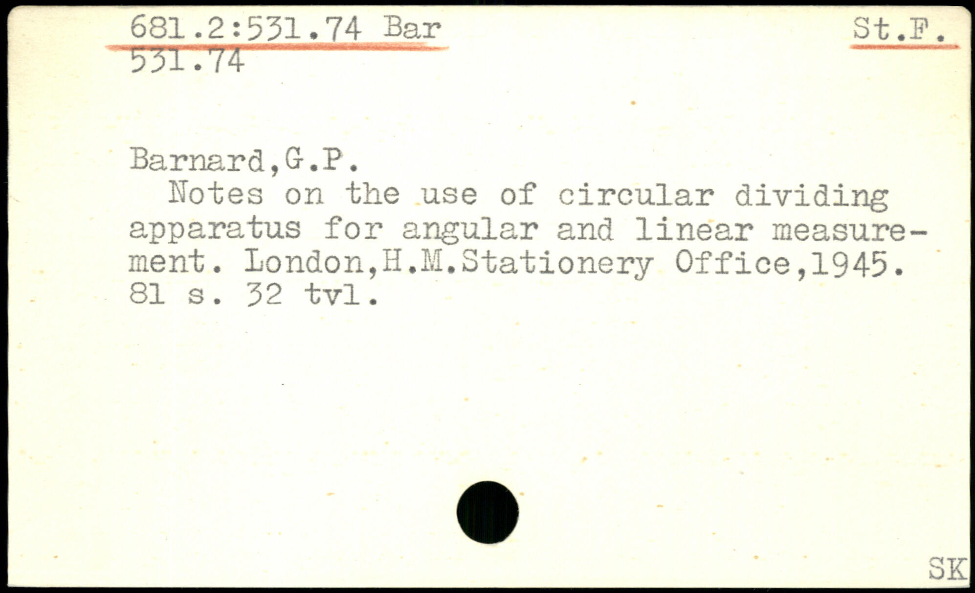 Notes on tlie use of circular dividing apparatus for angular and linear measurement. London,H.M.Stationery Office,1945.