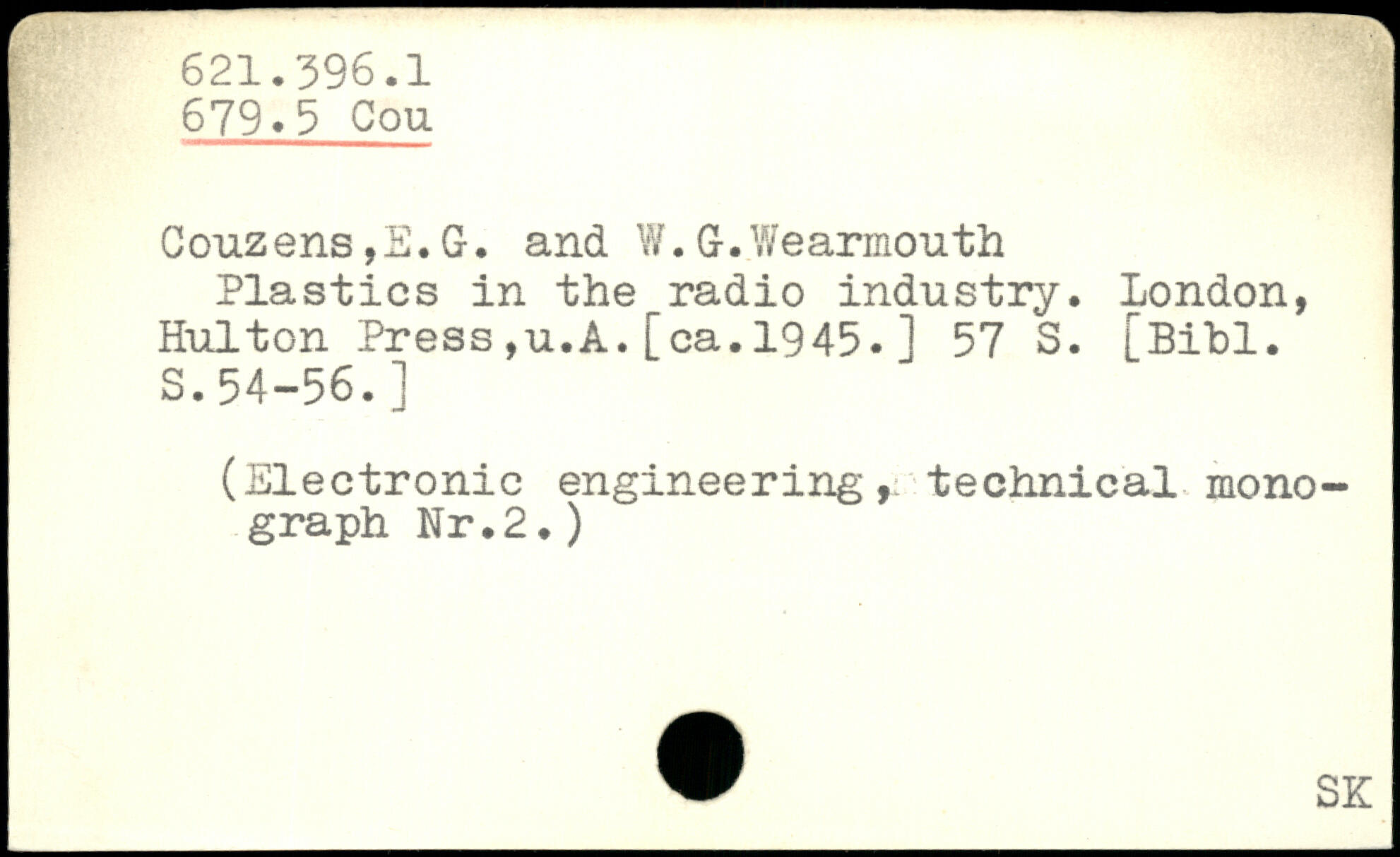 Couzens ,2. G. and W. G.Wearmouth Plastics in the radio industry. London, Hulton Press,u.A.[ca.1945.]