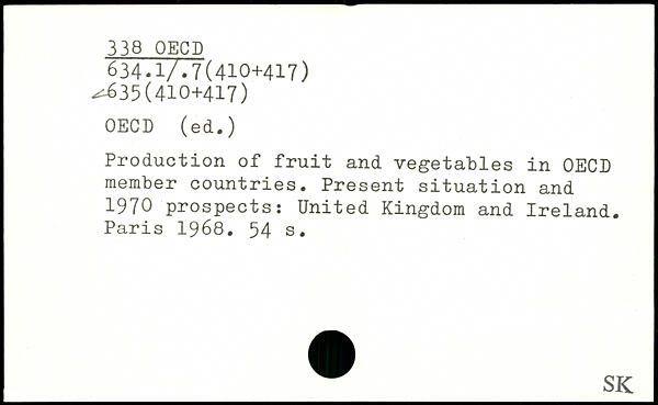 Production of fruit and vegetables in OECD member countries. Present situation and 1970 prospects: United Kingdom and Ireland.