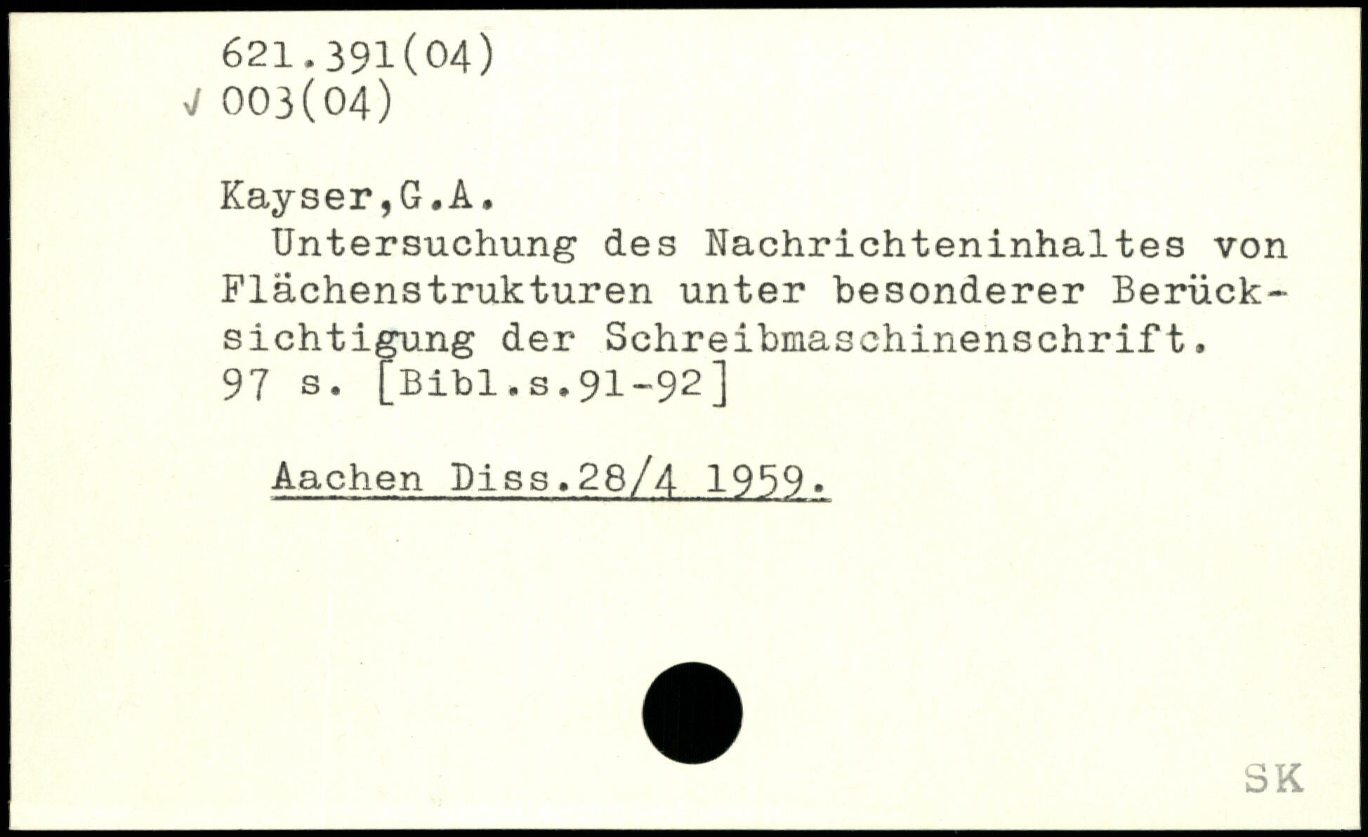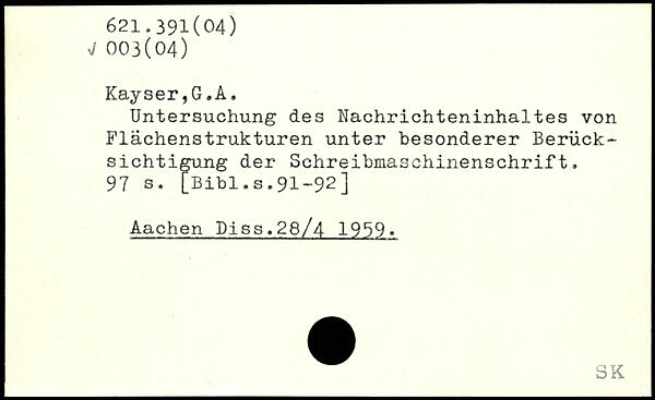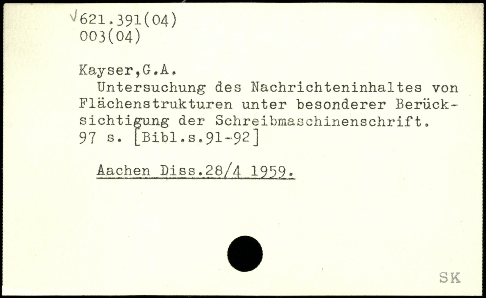 Untersuchung des Nachrichteninhaltes von Flächenstrukturen unter besonderer Berücksichtigung der Schreibmaschinenschrift
