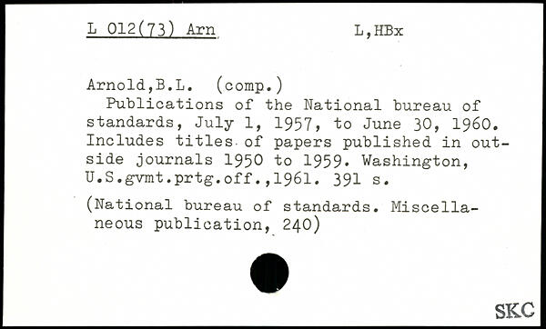 Publications of the National bureau of standards, July 1, 1957, to June 30, 1960. Includes titles of papers published in outside journals 1950 to 1959, Washington, U.S.gvmt.prtg.off.,1961.