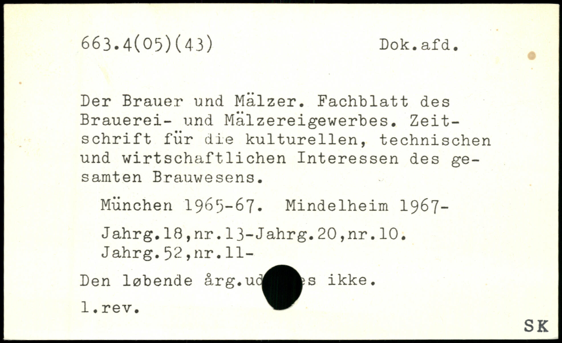 Der Brauer und. Mälzer. Fachblatt des Brauerei- und Mälzereigewerbes. Zeitschrift für die kulturellen, technischen und wirtschaftlichen Interessen des gesamten Brauwesens.